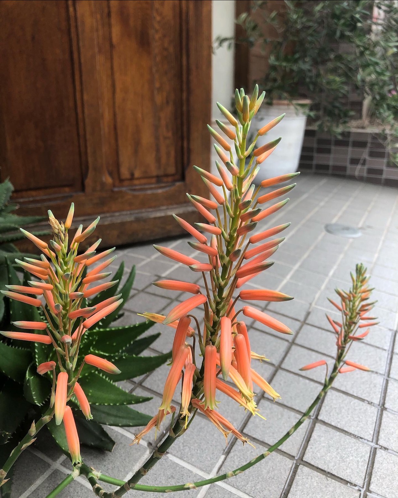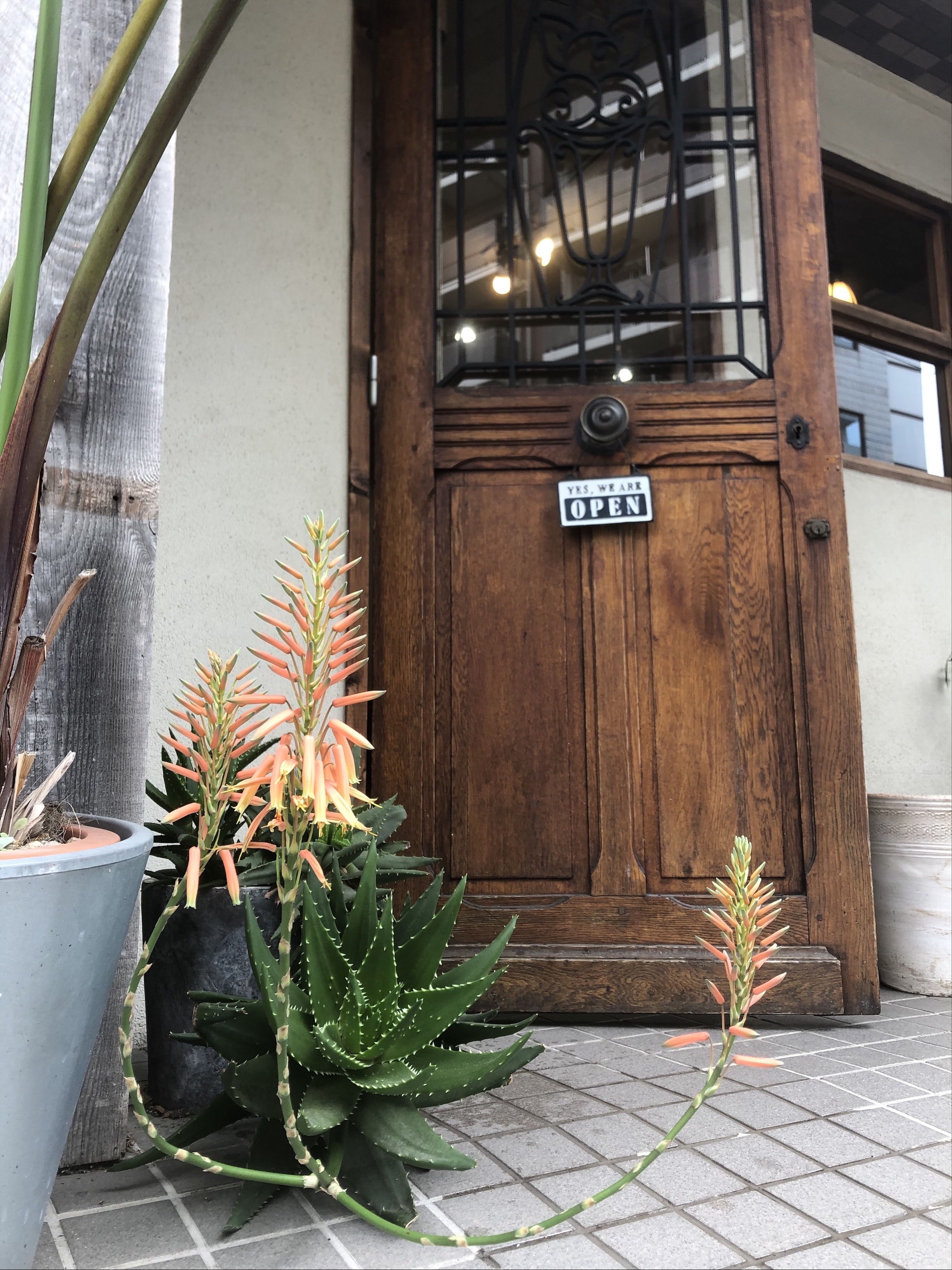 店先でスクスク育ってくれていたアロエが初めて花を咲かせました。