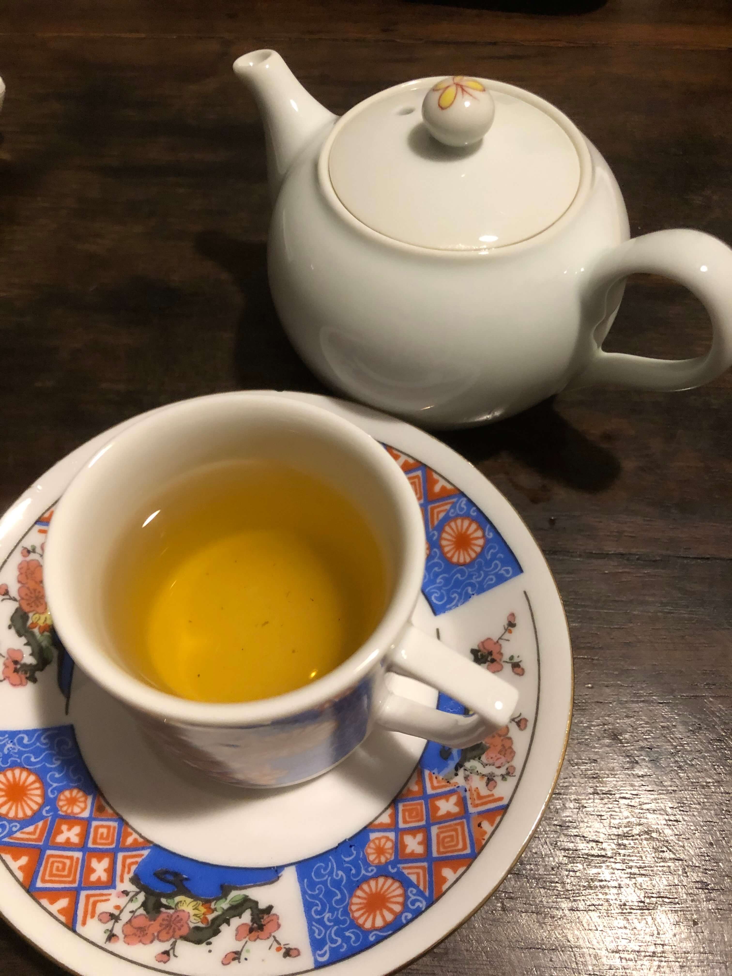 湯のみは30年前にオーナー佐能さんが中国奥地で見つけた逸品